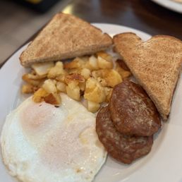 Needed a good breakfast and got it here! Friendly waitstaff and good breakfast at this moment and pop type cafe! The pictures on the wall shows community. They were pictures of customers. Nice touch. I had two eggs, French toast, and 4 pieces of bacon with coffee. Delicious and the eggs were perfect and the way I liked it, over easy. My son had eggs over medium (notice little yolk in the picture) and French toast. He finished his plate as well! Coffee was delicious too!